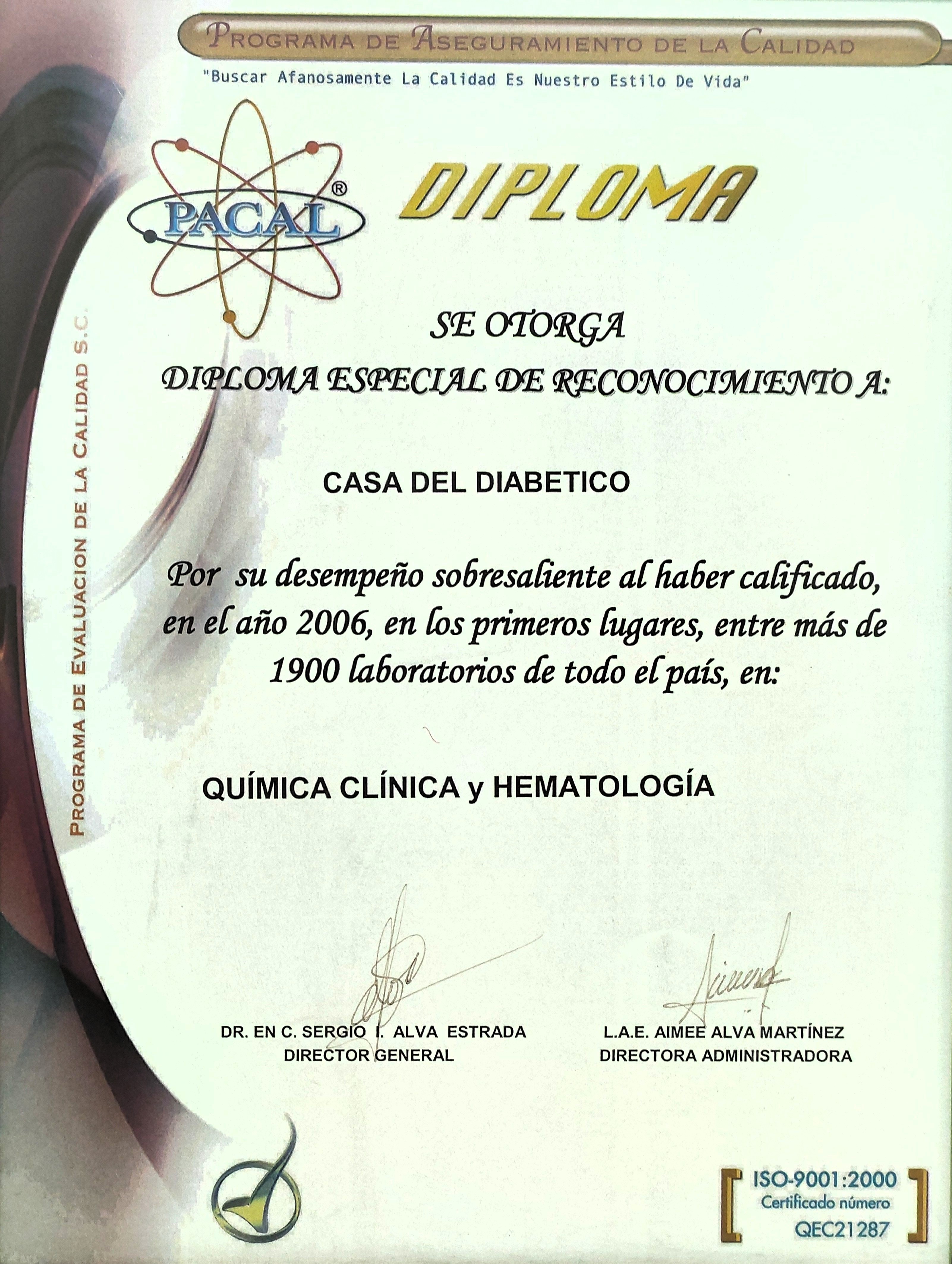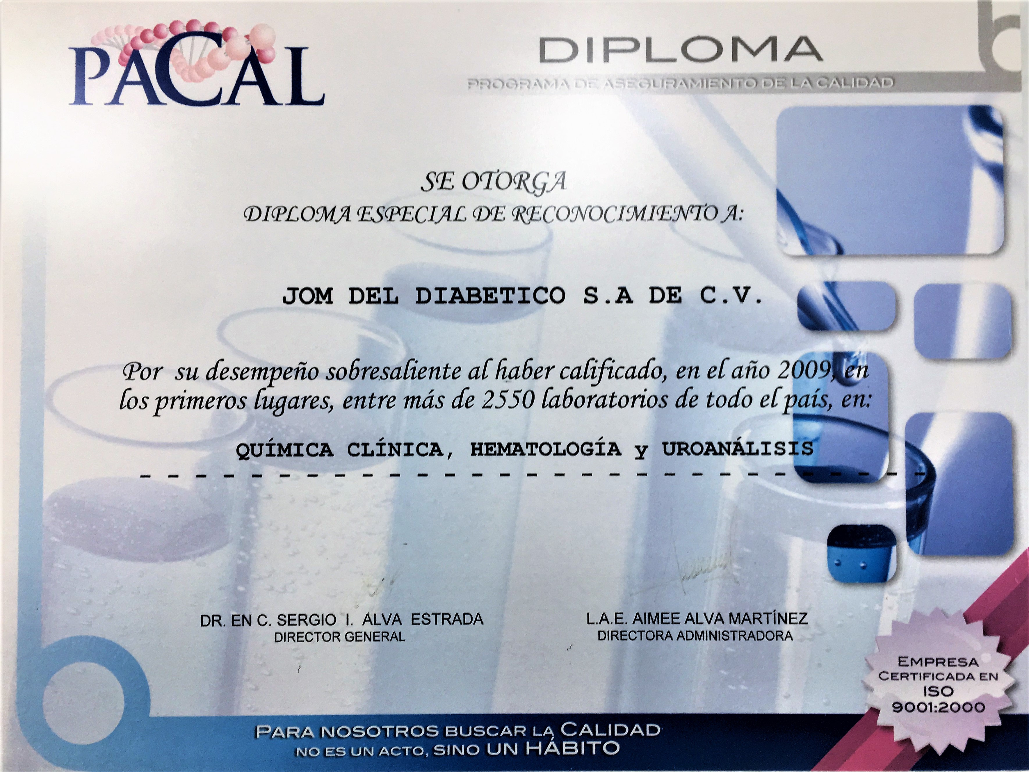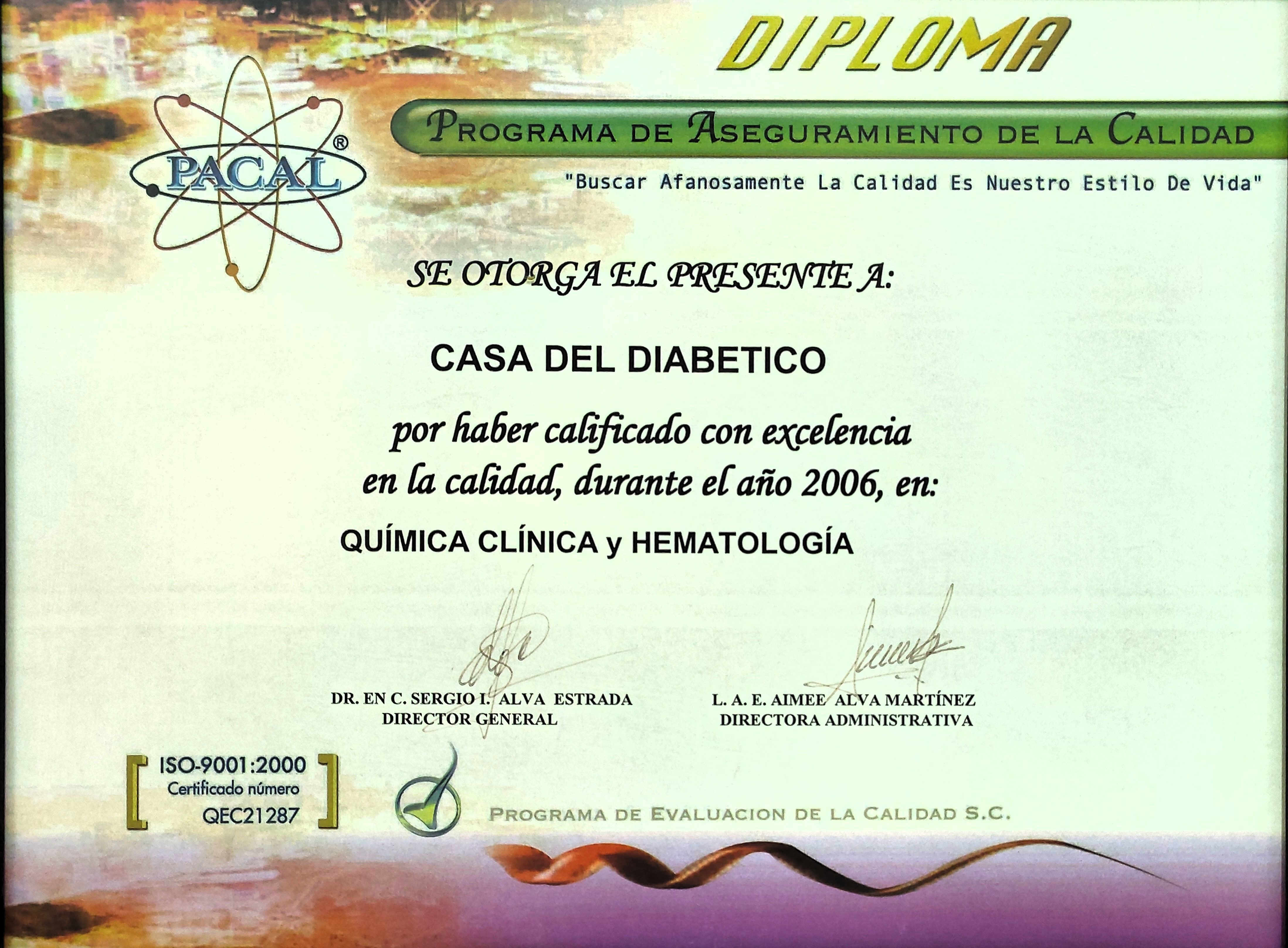 Somos parte del “Programa de Control de Calidad (PACAL) garantizando confiabilidad en nuestros resultados y un servicio de alta calidad con atención personalizada y humanizada. En el año 2005 obtuvimos el primer lugar en Química Clínica y en el 2006 de excelencia en Hematología. Trabajamos con todos los lineamientos y “Normas de Laboratorio y Sistema de Gestión de la Calidad “, vigente con una certificación ISO:9001:2015 y la Acreditación.